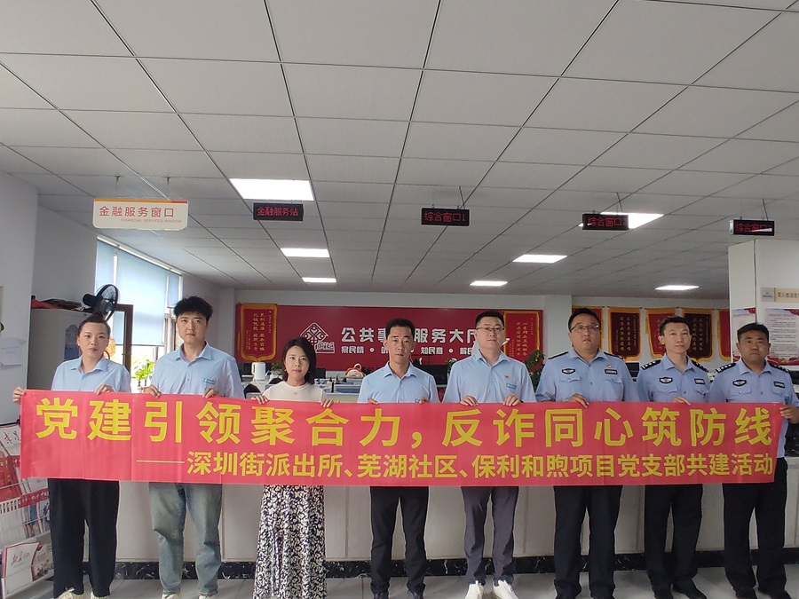 为深化党建引领基层治理效能,构建全民反诈安全防线,深圳街派出所联合芜湖社区、保利和煦项目党支部共同开展“党建引领聚合力,反诈同心筑防线”主题共建活动。通过“党建+反诈”模式,将反诈宣传深度融入基层治理,切实提升群众识骗防骗能力,守护群众财产安全。