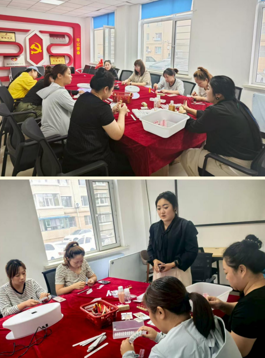 为进一步拓宽辖区女性就业渠道,帮助辖区女性掌握实用技能、实现灵活增收,海口社区开展“巧手筑梦 指尖技艺”手工灵活促就业活动,聚焦穿戴甲制作技能展开教学。
