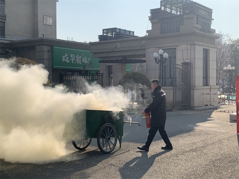 此次消防演练采取“先培训,再示范,后实操”的方式进行。首先,消防讲解员结合日常火灾、电动车飞线充电、油锅起火等围绕居民常见事故案例进行深入剖析,教育并警示大家火灾事故带来的严重危害性,提醒大家要时刻关注消防安全。同时,向大家普及了火场逃生自救及遇到火灾事故时如何进行人员疏散、自救逃生等消防知识技能。为了让大家有更加直观的认识,消防讲解员亲自在现场示范模拟灭火,手把手指导物业服务人员灭火器的使用注意事项以及初期着火点的扑灭方法。参加演练观摩的小区居民、街边商户代表、物业服务人员、社区工作人员在讲解员的指导下进行实操灭火演练。