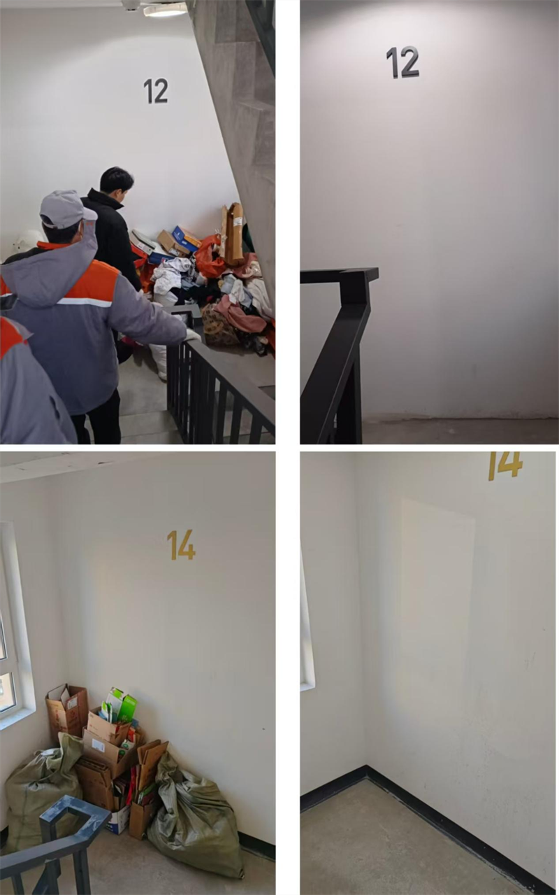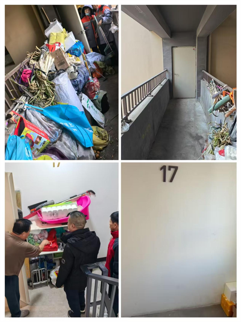 此前,该小区楼道杂物堆积问题突出,废旧家具、纸箱、闲置物品挤占公共空间,不仅影响居民日常通行,更埋下严重消防安全隐患。社区制定工作方案后,迅速启动整治工作,严格落实“书记带头、社区包栋、网格到户”工作机制,通过线上微信群推送宣传视频、线下张贴通知的方式,引导居民自行清理。对无人在家的住户,工作人员张贴“到访不遇”告知条,确保通知全覆盖。同时,社区联合物业对逾期未清理的杂物进行集中清理,明确暂存位置,兼顾整治力度与民生温度。