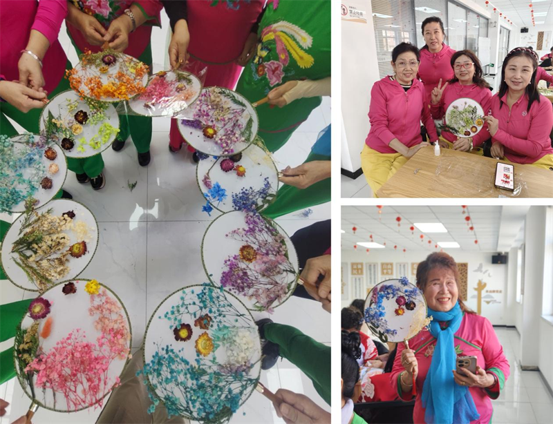 活动现场,社区向长期以来默默奉献、扎根基层的女性工作者和志愿者致以节日祝福与诚挚感谢,充分肯定大家在政策宣传、环境整治、邻里调解、便民服务等工作中的辛勤付出。随后,大家在工作人员的指导下,从琳琅满目的干花中挑选心仪的素材,一边轻声交流想法,一边在扇面上尝试摆放,她们用灵巧的双手将不同颜色和形状的干花巧妙组合,原本素净的扇面渐渐被赋予了灵魂,变成一件件凝聚着她们巧思与温情的独特艺术品。