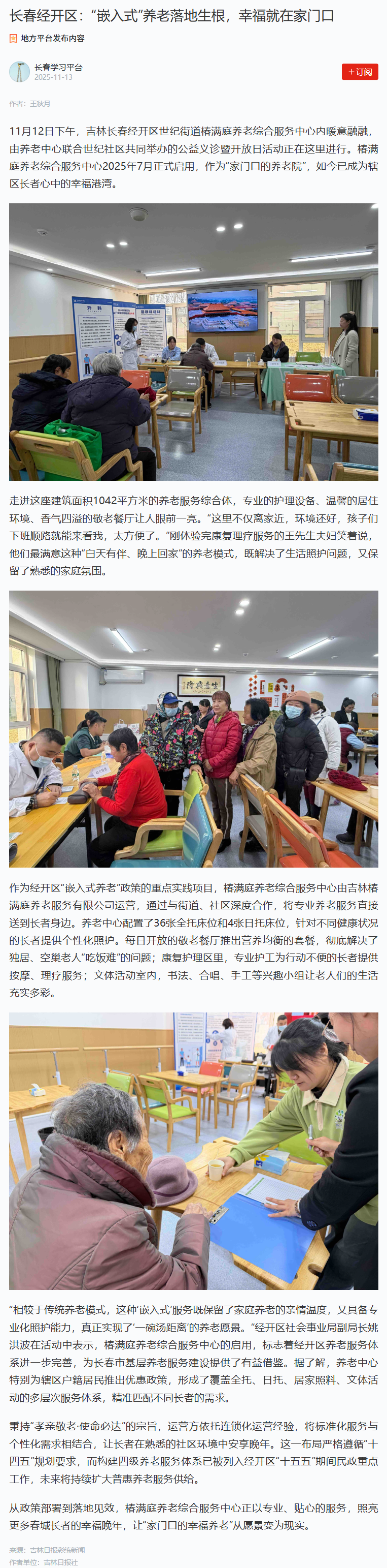 11月13日《学习强国》:长春经开区 “嵌入式”养老落地生根,幸福就在家门口