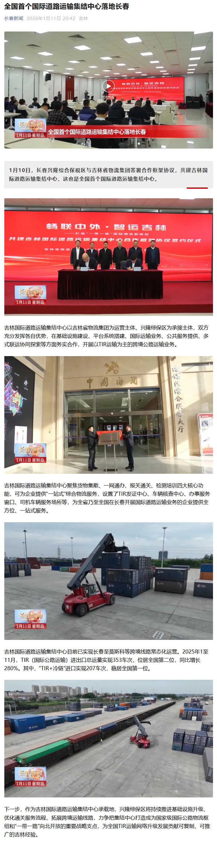 1月11日《长春新闻》:全国首个国际道路运输集结中心落地长春