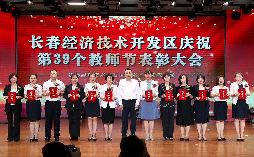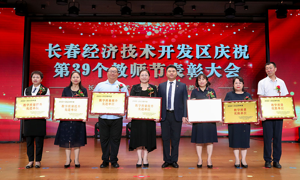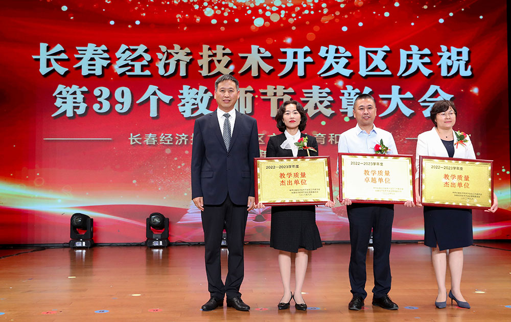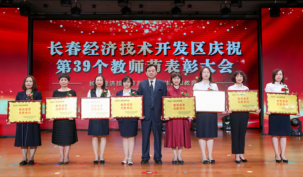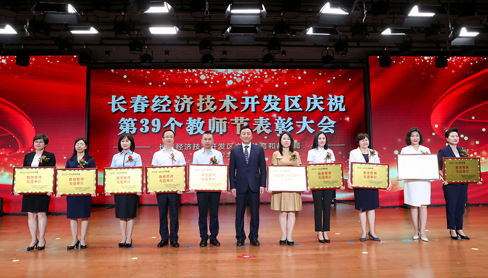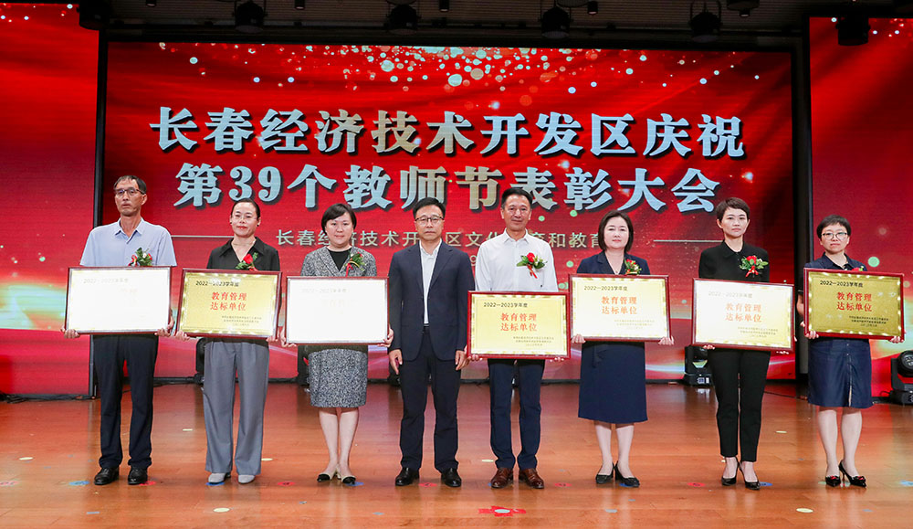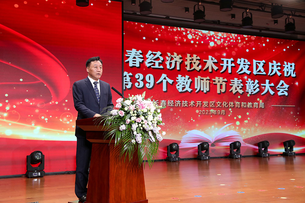 刘峰宣读《关于长春经济技术开发区教育系统2022-2023学年度先进集体和先进个人的表彰决定》。
