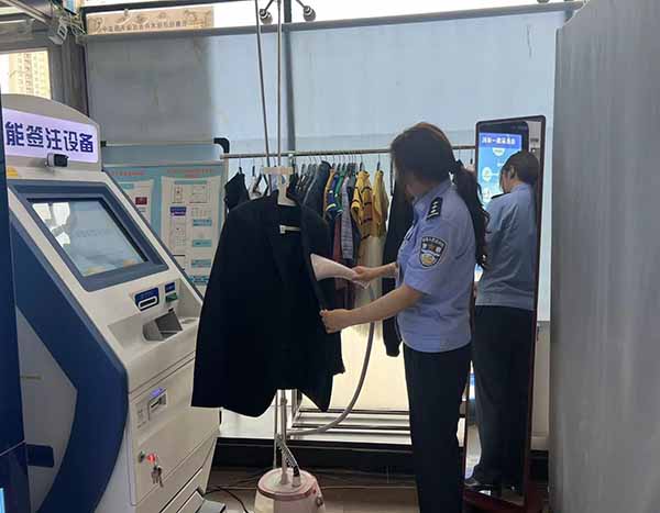 拍照区在配备服装的同时,还置办了假领、黑色头发喷雾、梳子、发卡等。如有需要,内勤还能提供妆容建议,在此基础上,指派专人负责衣服的后期清洗熨烫,保证清洁卫生。这一小小的改变,背后是公安窗口对服务细节的极致追求和对群众需求的深切关注。