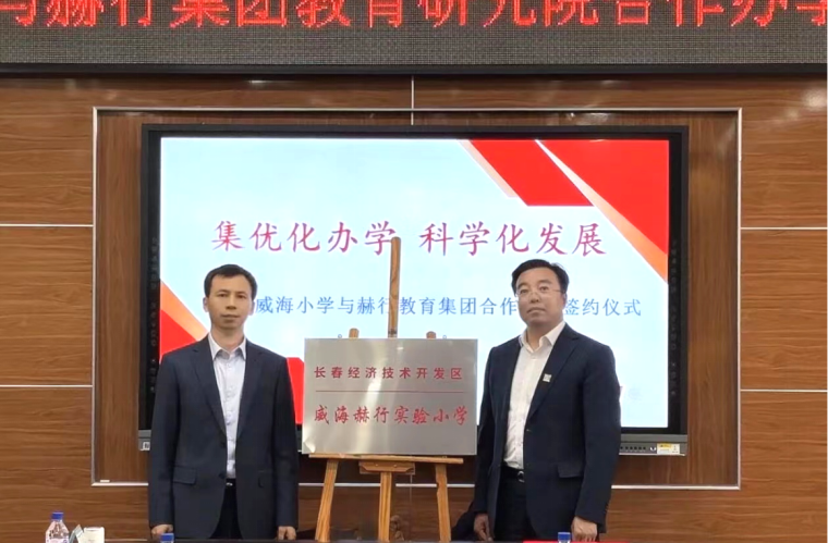 5月15日,按经开区文教局与赫行教育集团达成的战略合作协议,赫行教育集团与经开区威海小学进行委托管理项目签约仪式。自此,“长春经济技术开发区威海小学校”正式更名为“长春经济技术开发区威海赫行实验小学”。