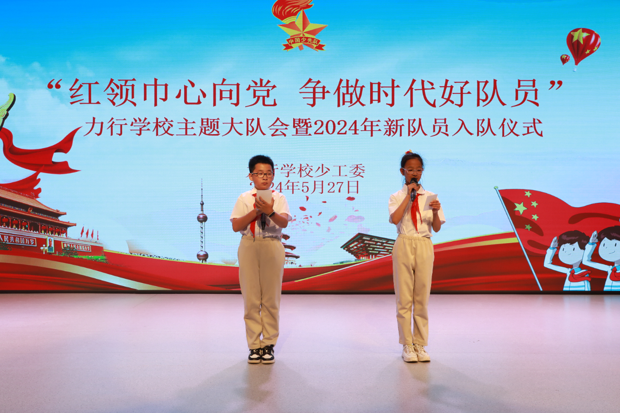“星星火炬指引方向,红领巾系满理想。”力行学校大队辅导员陈宇老师讲话。他衷心祝愿每一位新入队的少先队员能够在少先队这个充满生机与活力的大家庭中快乐成长、不断进步。同时,也期望广大少先队员在红领巾的指引下,“做爱党爱国的红孩子、做有梦想的美孩子、做爱学习的好孩子、做爱劳动的能孩子”,不断追求卓越,让自己成为新时代祖国建设的栋梁之才!