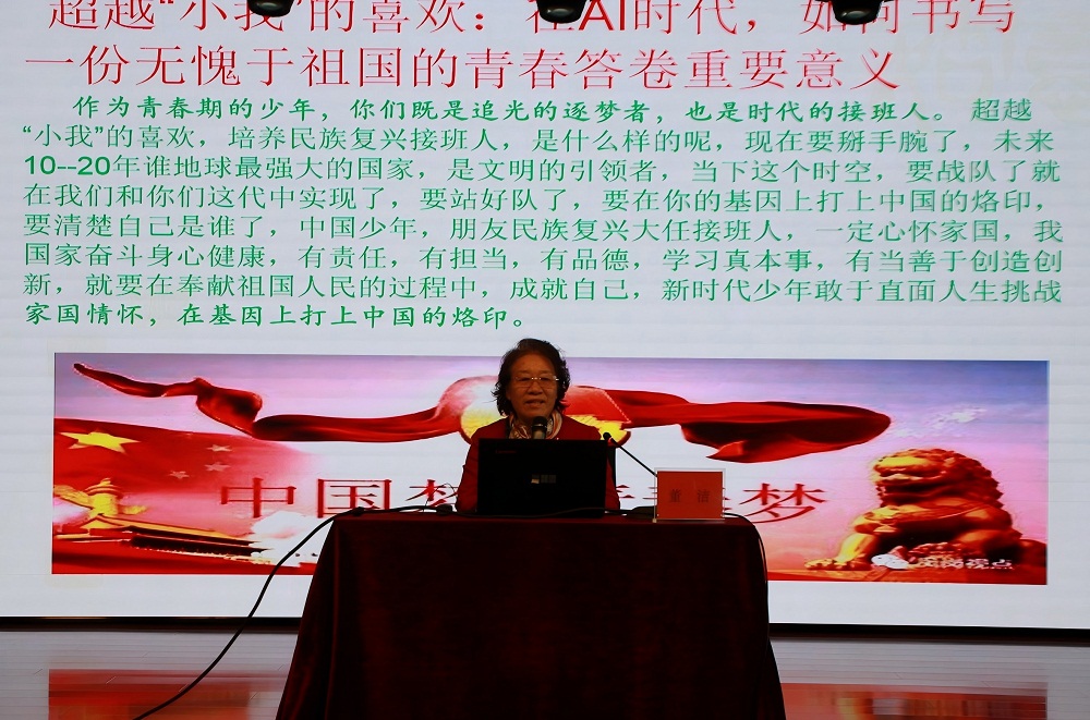 当青春遇上AI浪潮,我们如何在迷茫中找准方向,在成长中锻造底色?为引导学子树立正确价值观,破解青春期困惑,赋能未来发展,长春经济技术开发区育隆学校特邀请长春市关工委火炬宣讲团副团长、市文化广电和旅游局关工委主任董洁老师,带来主题为“超越‘小我’的喜欢:在AI时代,如何书写一份无愧于祖国的青春答卷”的专题讲座,为七年级学子送上了一场兼具思想深度与实操价值的成长盛宴!