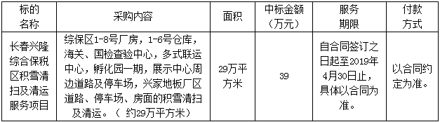 三、采购项目名称:长春兴隆综合保税区积雪清扫及清运服务项目