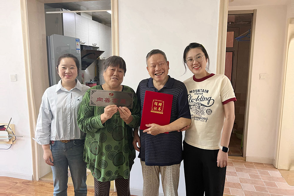 兴隆山镇金湖社区为爱心家庭授荣誉牌。