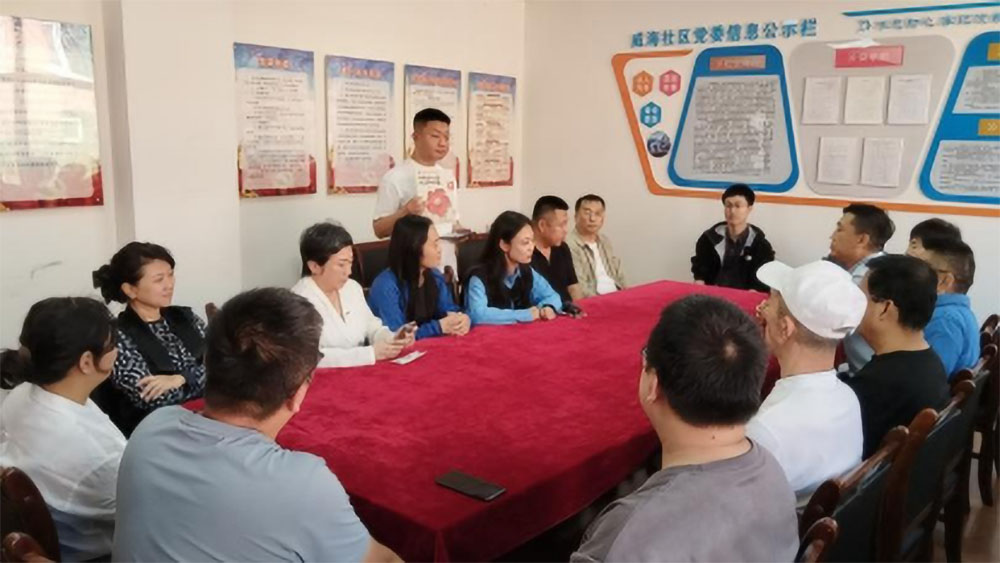 临河街道威海社区动员百姓开展慈善捐款募款座谈会。